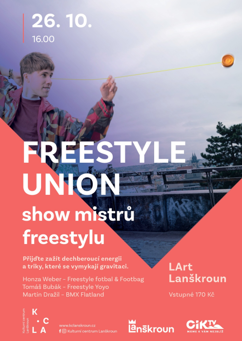 Vystoupí Honza Weber - Freestyl fotbal & Footbag, Tomáš Bubák - Freestyl Yoyo a Martin Dražil BMX Flatland. Vstupné 170 Kč.