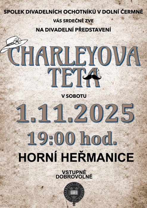 Spolek divadelních ochotníků v Dolní Čermné vás srdečně zve na divadelní představení Charleyova teta.
