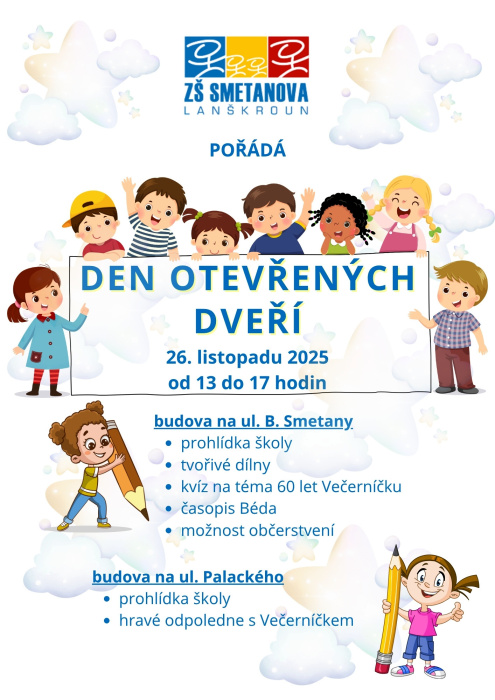 ZŠ B. Smetany pořádá ve středu 26. listopadu od 13 do 17 hodin Den otevřených dveří.