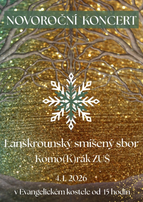 Zveme vás v neděli 4. ledna od 15 hodin do evangelického kostela na novoroční koncert Lanškrounského smíšeného sboru Komo(K)rák ZUŠ.