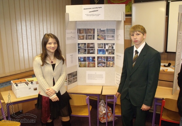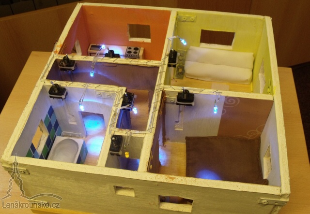(5) Zapojení elektrického rozvodu v bytě – osvětlení (Veronika Grunwaldová, Adam Skalický, oba ze ZŠ Výprachtice). Malý funkční model, může být vyučovací pomůckou.