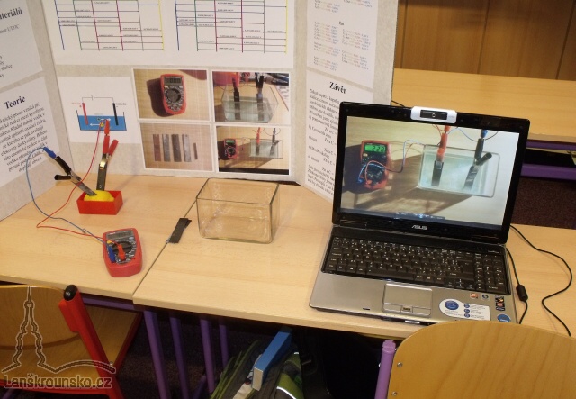(8) Energie za pár kaček (Pavel Bednář, Tomáš Stejskal). Vlastnosti rázných kapalin jako elektrolytu mezi dvěma elektrodami z různých kovů.