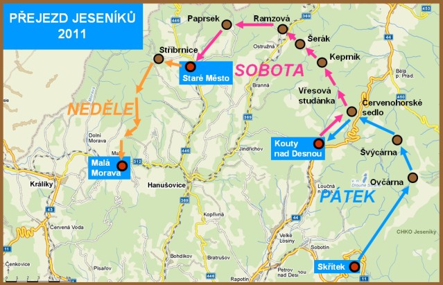 Cílem etap byly v pátek Kouty nad Desnou a v sobotu Staré Město, v neděli 23. ledna přejezd končil v Malé Moravě.