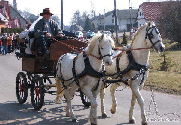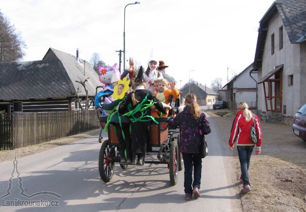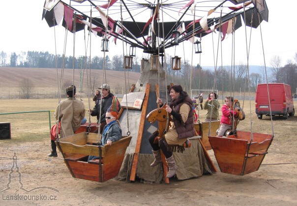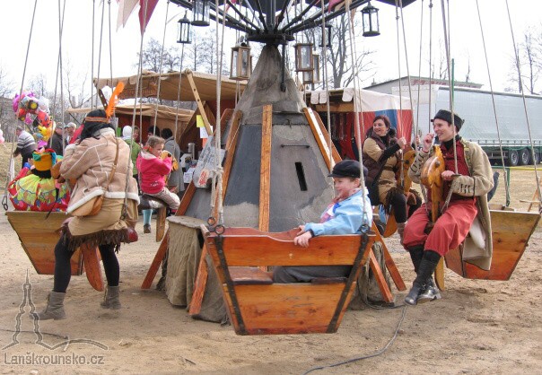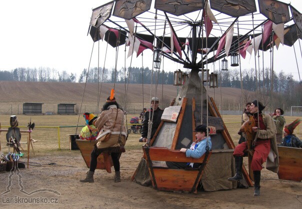 Drobotinu, kterou už bolely nožičky, svezl kočár tažený koňmi. Po návratu na hřiště pokračoval maškarní rej. Hodovala a veselila se snad celá vesnice. Nechyběly stánky s občerstvením, masnými a sýrovými výrobky, cukrářskými pamlskami a medovinou. Vedle nich nabízeli své výrobky řemeslníci a výrobci různých dárkových předmětů ze skla, ze dřeva a kovu, z keramiky a vosku. Mohli jste si zde koupit i hezká malovaná trička, nebo drátkem zdobená velikonoční vajíčka. Na historickém kolotoči se vozily nejen děti, ale radost udělal i mnoha dospělákům.