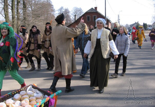 Cestou se rozdávaly koblížky, také něco pro zahřátí, nebo spíše pro dobrou náladu. Zima nikomu nebyla, sluníčko pěkně hřálo.