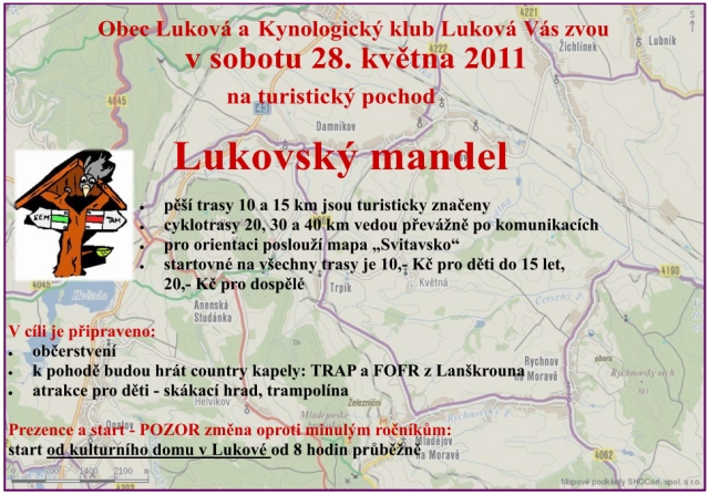 Obec Luková a Kynologický klub Luková Vás zvou v sobotu 28. května na turistický pochod Lukovský mandel.