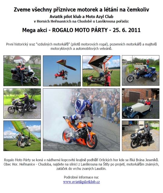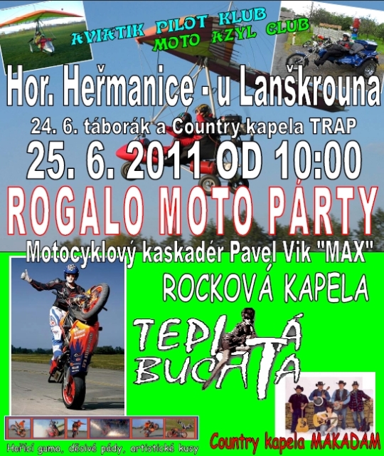 Rogalo Moto Párty se koná už za 6 dní, příští sobotu, 25.6.2011 na Chudobě v Horních Heřmanicích u Lanškrouna.