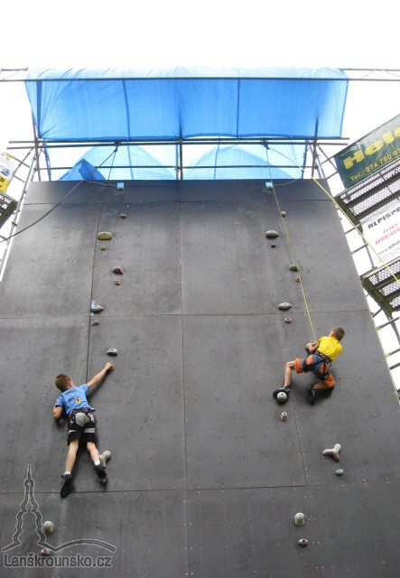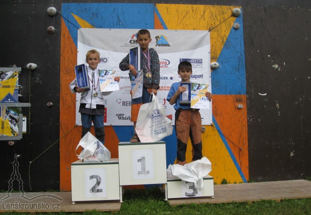 Závod na rychlost se leze na dvou cestách, které se musí vylézt co nejrychleji, oba časy se sčítají. Nejdříve se leze kvalifikace, po sečtení obou časů se postupuje do finále. Malé finále se leze formou pavouka - závodník z 1. a 8. místa, z 2. a 7. místa atd. Ten, co prohraje, vypadává. Do velkého finále se dostanou čtyři nejlepší lezci, kteří lezou z 1. a 4. místa, z 2. a 3. místa. Ti, kteří vyhrají, lezou proti sobě a poražení také proti sobě. Našim lezcům se dařilo - Andrea Pokorná si vyběhla pro 3. místo a Lukáš Doleček také pro 3. místo. Druhý den nás čekaly druhé závody na rychlost. Závodníci byli po prvním dni unaveni, protože závody trvaly do noci, navíc spali ve stanech a to není tak pohodlné jako doma. Nicméně se nám druhý den také vydařil. Andrea a Lukáš si vylezli opět pro 3. místo. V Příboru se vyhlašoval tzv. Příborský zvon, což je vyhodnocení obou dnů závodu. Lukáš Doleček vybojoval pohár a medaili za 1. místo v kategorii E, roč. 2003 a mladší. Andrea Pokorná si odvezla Příborský zvon za 3. místo. Závody to byly pěkné, pod čirým nebem, ale náročné. Všem lezcům blahopřeji a přeji odpočinkové prázdniny, kdy naberou hodně sil do dalších poprázdninových závodů.