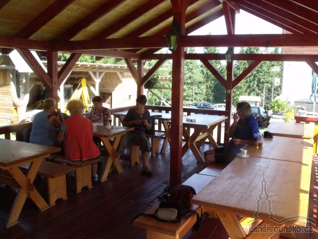 Díky perfektnímu počasí – slunečno se svěžím větříkem – jsme mohli prezentaci přemístit ven z chaty do prostorného altánu.