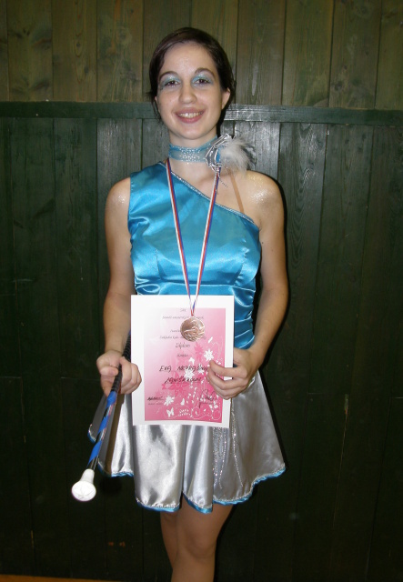 První na řadě byla hned ráno Eva Neprašová se svým sólem a ta získala krásné 3. místo - určitě díky twirlingu a krásným výhozům s třemi otočkami, které se jí podařily bez pádu.