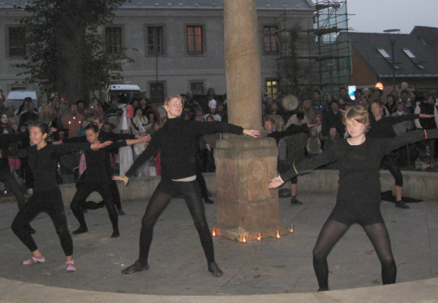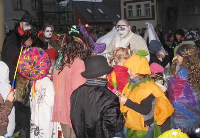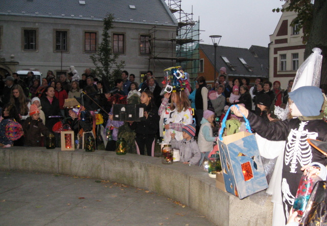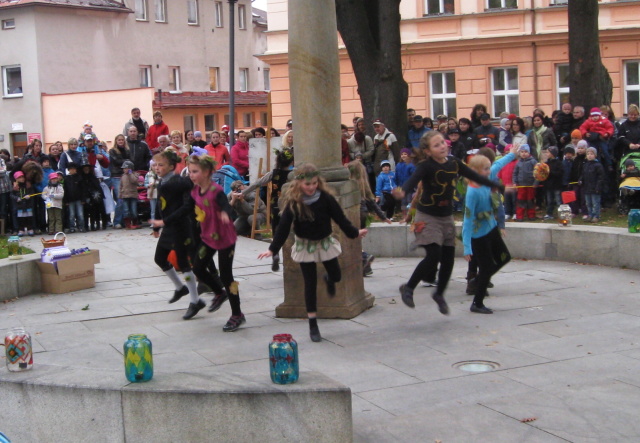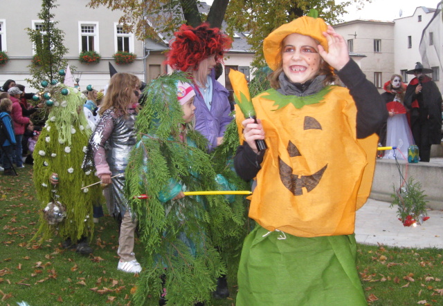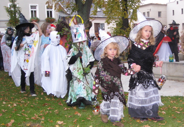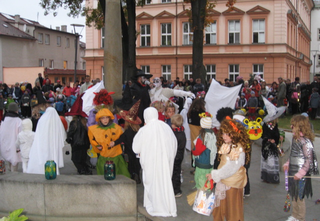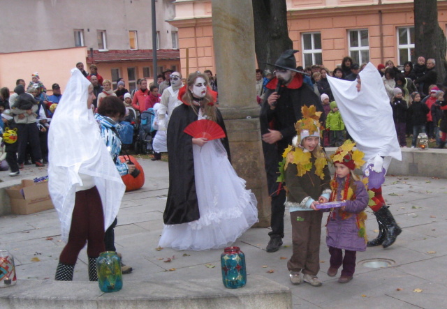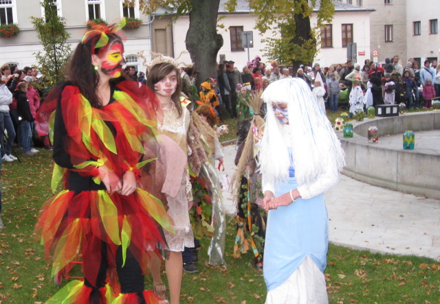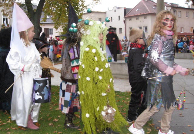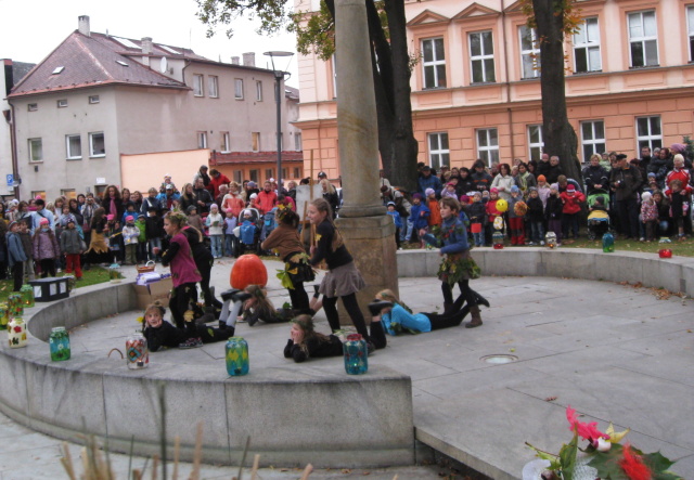 Na velké párty se dnes v podvečer sešla při tradičních Slavnostech světla nejrůznější strašidýlka. Kolem fontány kroužili hejkalové, čarodějnice, duchové, smrťáci, bažiňáci, lesní trolové, bludičky a další lesní, luční, polní, ale i školní příšerky a obludy.