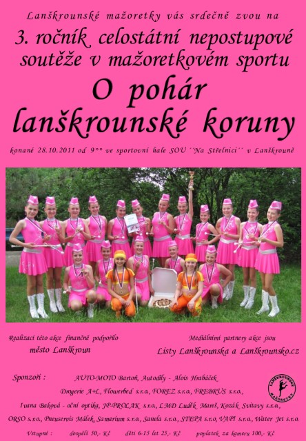 Lanškrounské mažoretky vás srdečně zvou na 3. ročník celostátní nepostupové soutěže v mažoretkovém sportu O pohár lanškrounské koruny.