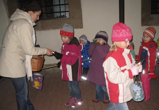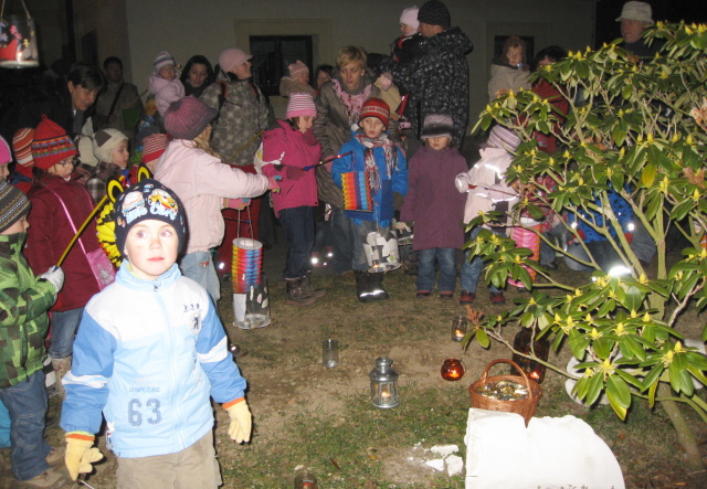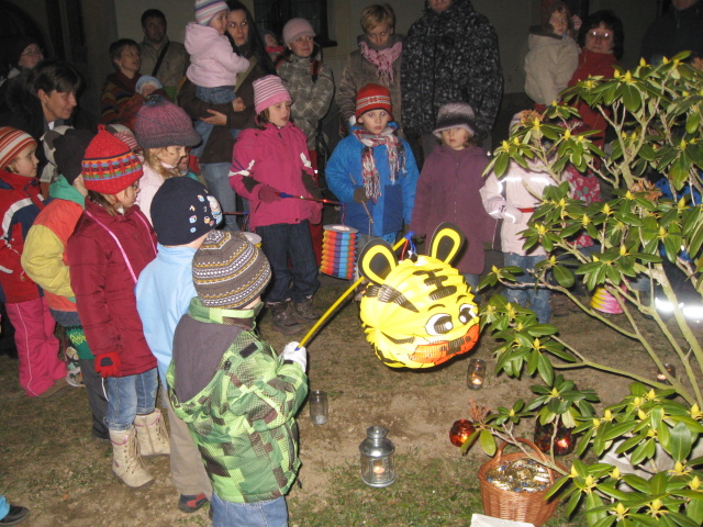 Včera v podvečer čekal u kašny na Jiráskově náměstí žebrák. Vyhlížel děti z rodinného centra, které se s lampiony a světélky vydaly hledat podklad svatého Martina. Děti nejdříve žebráka obdarovaly vlastnoručně upečenými svatomartinskými rohlíčky a lahví vína.