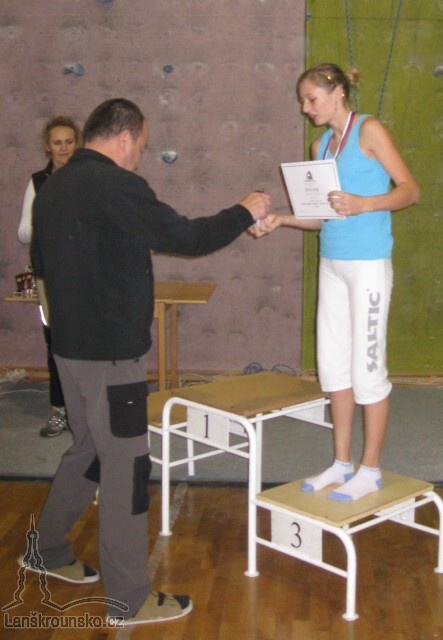 Ve čtvrtek 17. 11. 2011 jsme se rozjeli do daleké Břeclavi na mistrovství České republiky v lezení na rychlost. Za HK Lanškroun o.s. nás reprezentovala jen Andrea Pokorná v kategorii B. Tyto závody jsou specifické tím, že se lezou lehké cesty co nejrychleji. Málo lezců se zabývá tréninkem na rychlost a Andrea patří mezi ně, i tak se jí podařilo z mistrovství České republiky přivést bronzovou medaili za 3. místo. V celkovém hodnocení Českého poháru si přivezla pohár za celkové 3. místo.