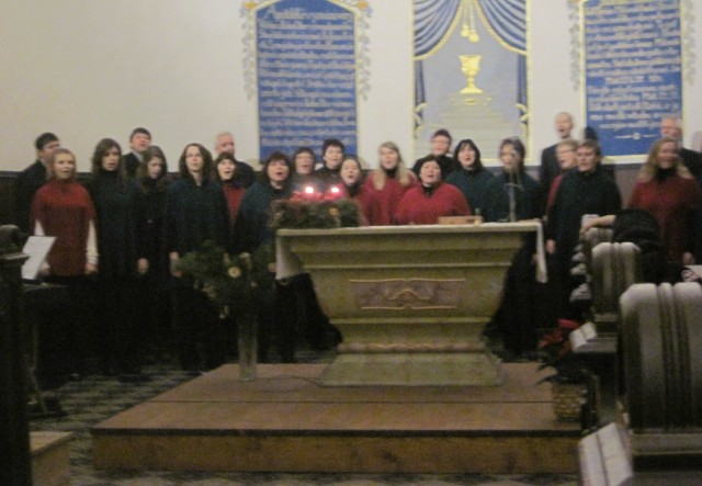 Koncert byl zahájen kánonem Gloria, který zazpívali všichni zpěváci. Následovalo vystoupení mladších zpěváku – žáků ZUŠ a poté se rozezněl čtyřhlasný sbor, jehož písně musely pohladit po duši všechny posluchače. Zaplněný kostel vyslechl tradiční české vánoční koledy, spirituály, písně se zimní tématikou a i duchovně laděné melodie.