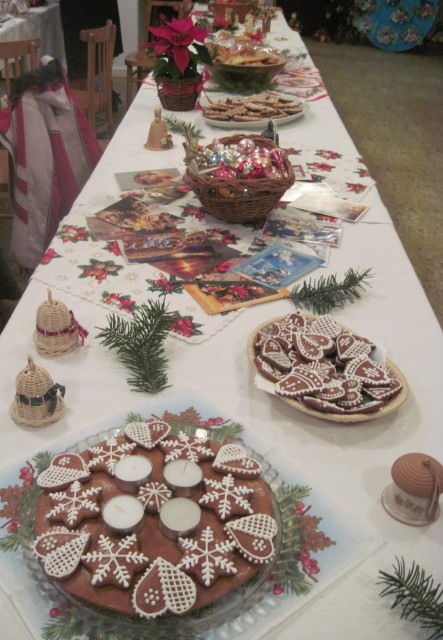 Přísálí bylo věnováno „trhu“, byly zde ke koupi vánoční ozdoby a dekorace, náušnice, šály, perníčky a ptačí budky.