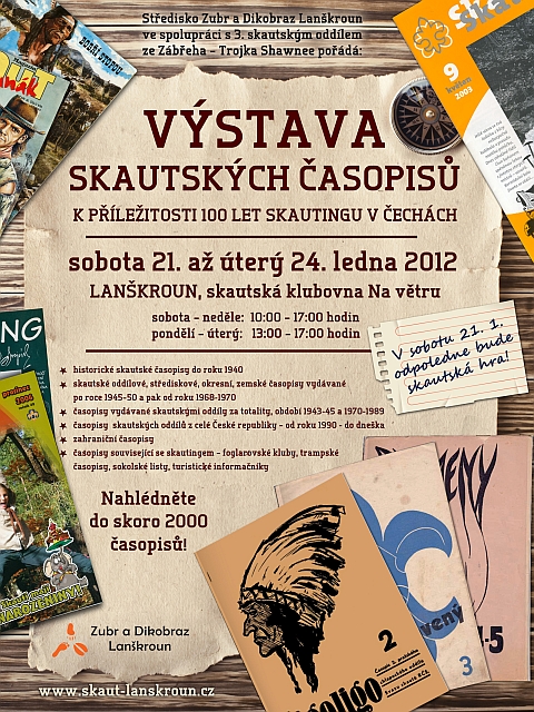 Máme novou příležitost si prohlédnout skautské klubovny v nové budově na konci sídliště atriových domků Na Větru. Příležitost nám dává čtyřdenní Výstava skautských časopisů, otevřená od soboty 21. ledna do úterý 24. ledna. Vstup je možný o víkendu od 10 do 17 hodin a další dva dny od 13 do 17 hodin.