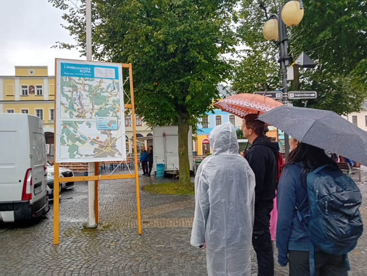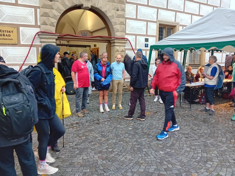 Počasí dnes nepřálo. Na startu Kopy před lanškrounskou radnicí to hýřilo barvami pláštěnek, ale ze všech čišelo odhodlání vybrané trasy zvládnout. Už včera večer vyrazilo na nejdelší 100 kilometrovou trasu 14 pěších (čísla z rána uváděla 12), ráno na 60 km 39 účastníků (prezentace kolem osmé hodiny ranní původně uváděla 23).