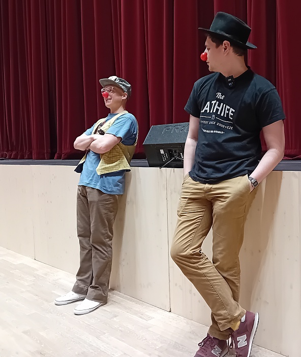 1 a 11 - Klauni Šimon Knápek a Matěj Richtr uváděli jednotlivé výstupy.