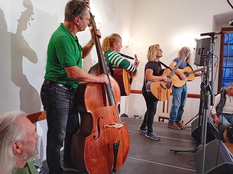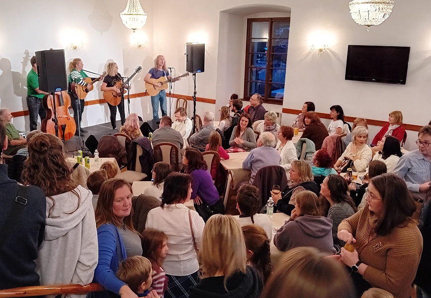 4 a 5 - Vystoupení lanškrounských muzikantů v baru lanškrounského zámku zaujalo mnoho diváků. Nebylo zde k hnutí.