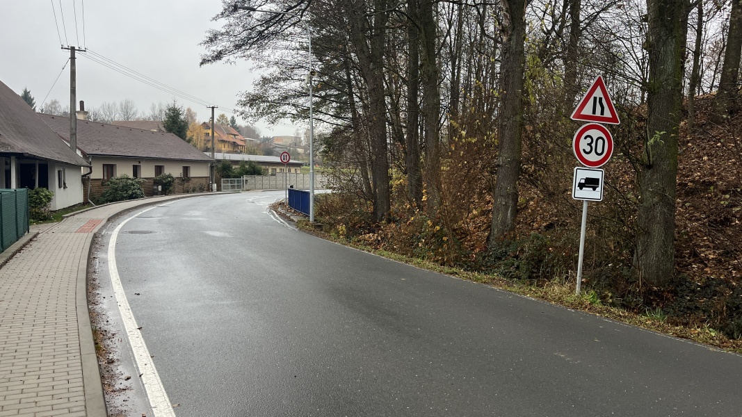 Dosavadní omezení rychlosti a úprava přednosti byla změněna tak, že se týká pouze nákladních automobilů. „Hurá! Tohle „zúžení" od začátku nebyl dobrej nápad," komentoval změnu značení na Facebooku obce František Mareš. Omezení pro osobní auta mohlo být odstraněno díky nově vybudovanému chodníku.