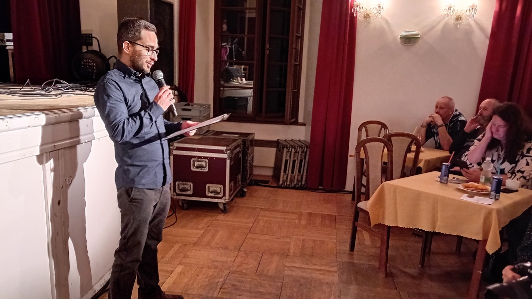 1 - František Kusý převzal moderování po Karlu Pokorném, který byl nedílnou součástí festivalu až do roku 2017.