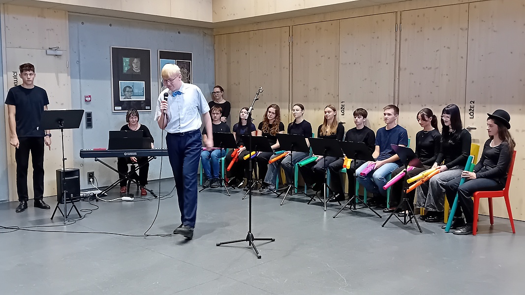 Děti z literárně-dramatického a hudebního oboru ZUŠ Jindřicha Pravečka se postaraly o většinu programu a svých rolí, vycházejících z vystavených portrétů v barevných linorytech, se zhostily na jedničku.