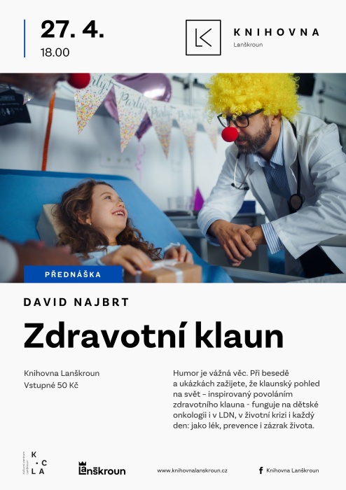 Městská knihovna Lanškroun zve 27. dubna od 18 hodin na přednášku Davida Najbrta Zdravotní klaun.